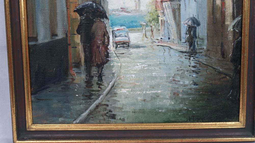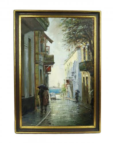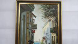 Olej na płótnie z widokiem miejskim z południa Francji.